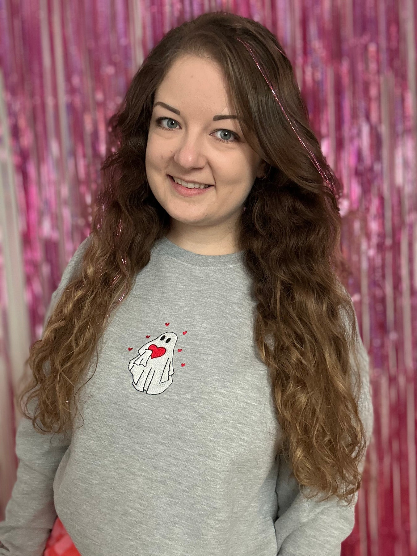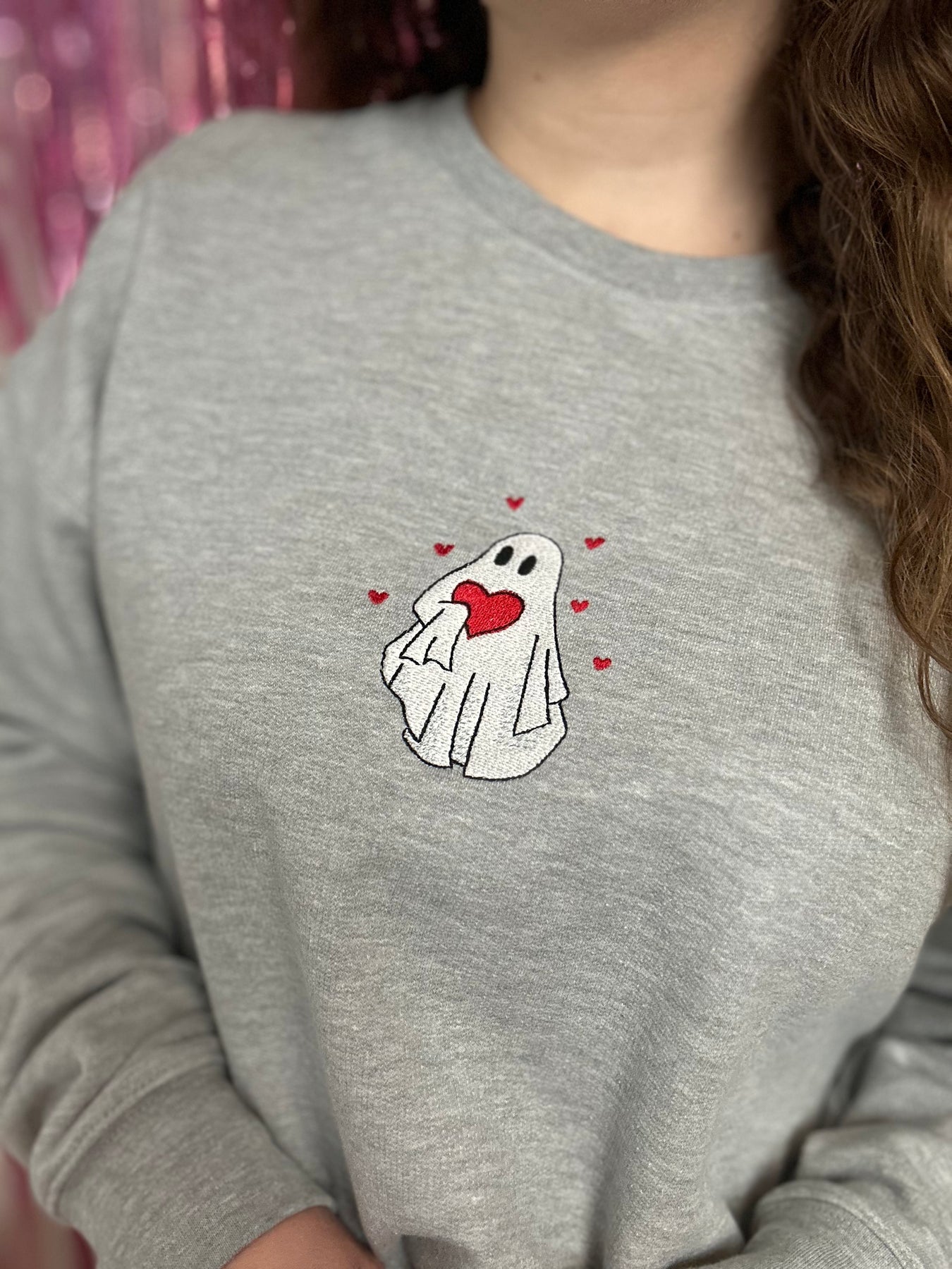 Embroidered ghost hearts crewneck.